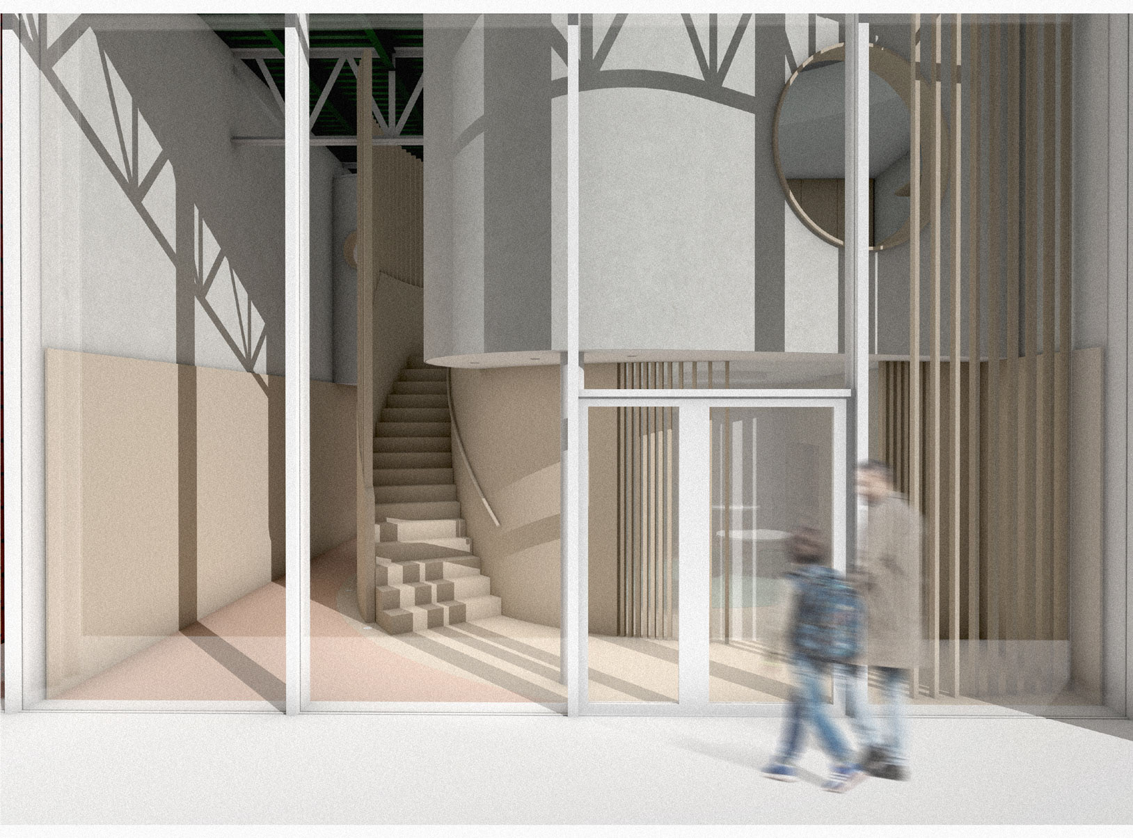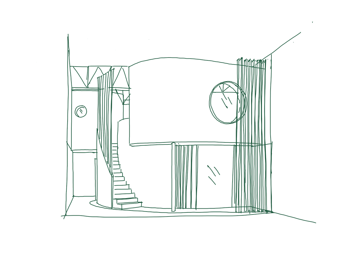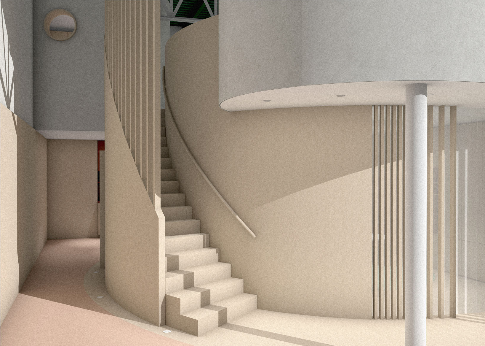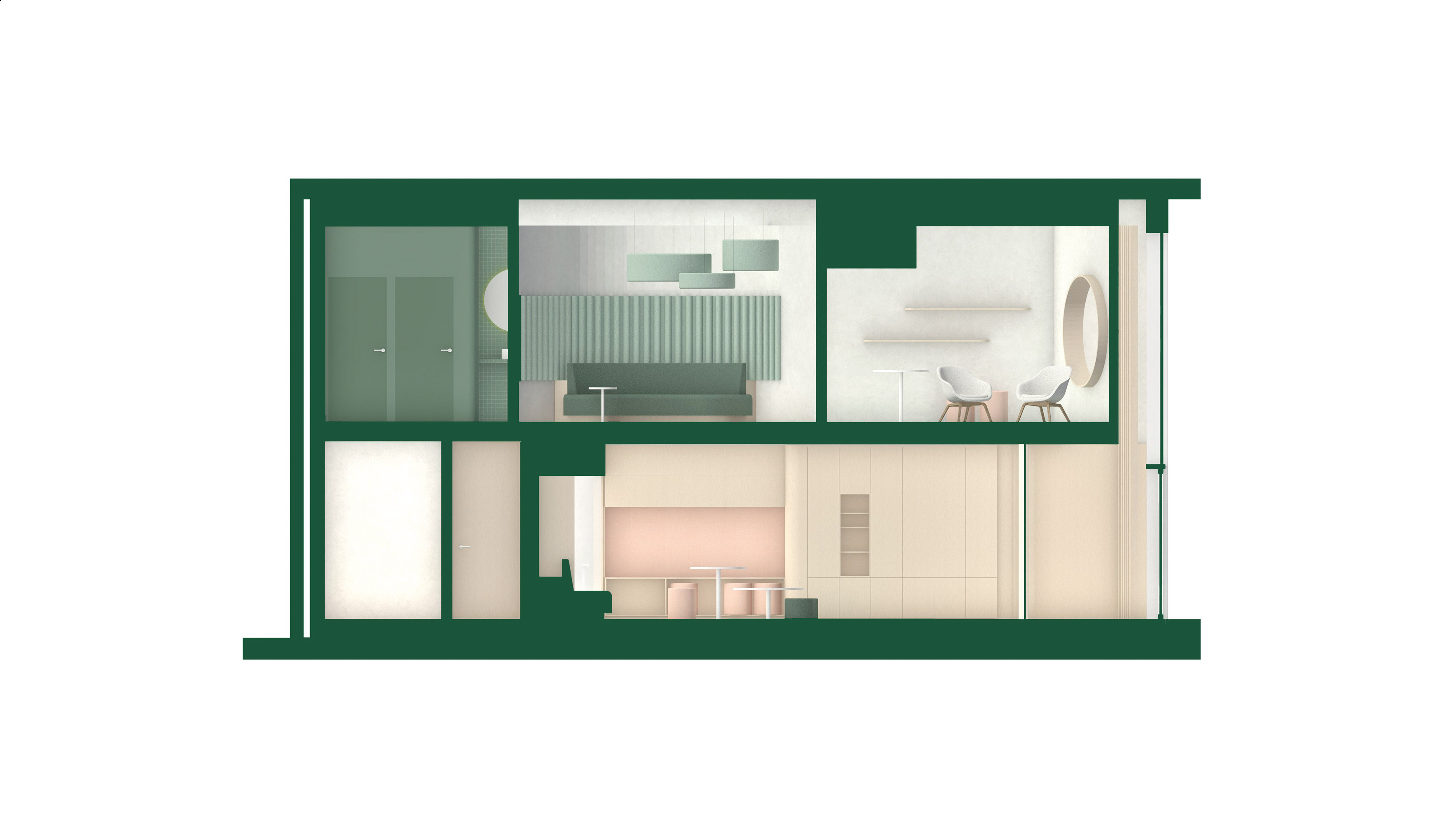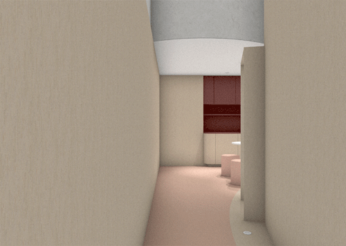 __opdracht__ Ontwerp een werkruimte voor 3 kinderpsychologen in een opgegeven ruimte. __CONCEPT__ Zachtheid primeert, zowel in de gebogen vormentaal als in het materiaal- en kleurgebruik. De opvatting is intiem en discreet. Alle ruimtes en functies zijn afgeschermd van de voorzijde. De toegangen van de consultatieruimtes zijn zo ingeplant, dat ze niet te zien zijn vanaf de straatzijde. De wachtruimte bevindt zich in de buik van de ruimte. De drankcorner achteraan laat zich pas zien wanneer je de ruimte verder naar achter betreedt. In elke ruimte nestelen de op maat gemaakte zitelementen zich in de curves van de ruimtes. __MATERIALEN__ eik fineer licht gebeitst, leempleister ‘Brusseleir’, linoleum, gerecycleerd pet felt