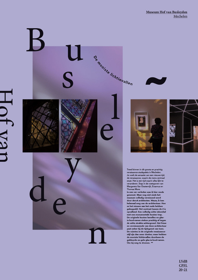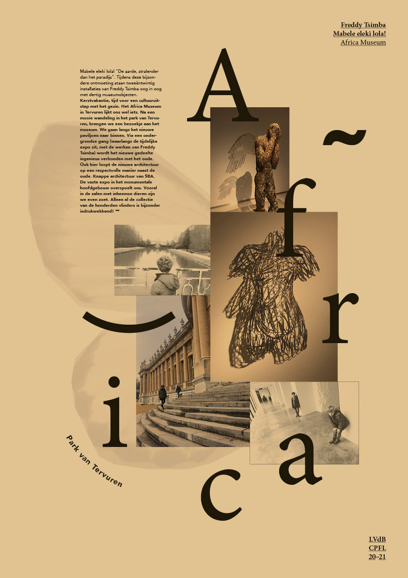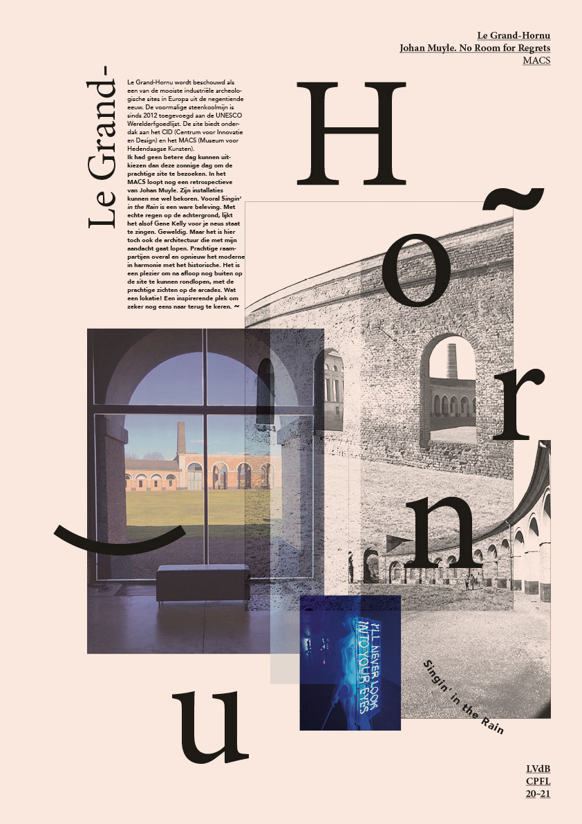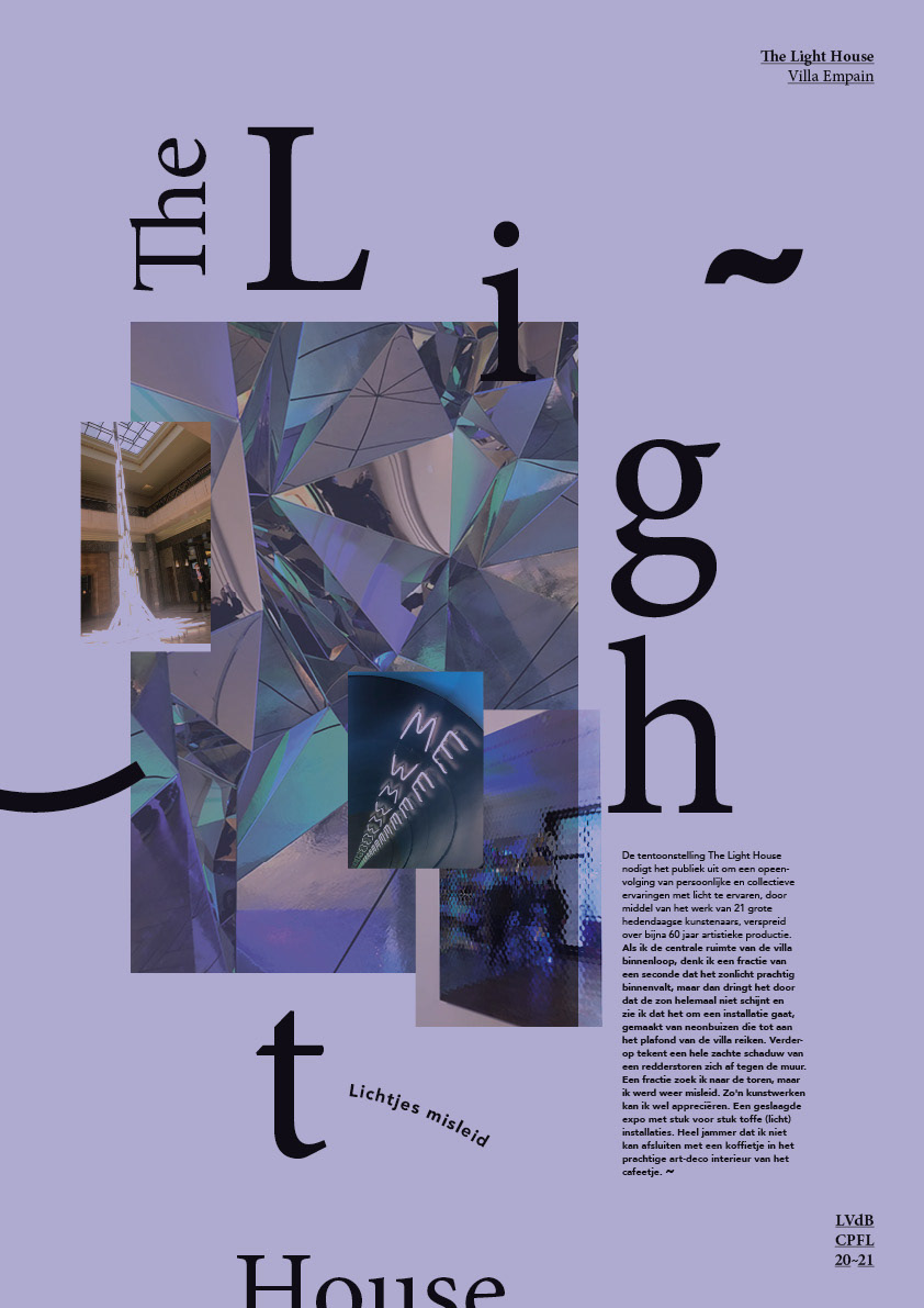 __opdracht__ Verzamelen van culturele ervaringen tijdens de opleiding. __CONCEPT__ Spelen met typografie, beeld, kleur en vorm. Gooi deze ingrediënten bijeen en schud ze door mekaar. Het resultaat zijn 10 kleurrijke posters. Het lijkt willekeur, maar is telkens opnieuw een zoektocht naar een compositie die werkt. __MATERIALEN__ geprint op gekleurd papier